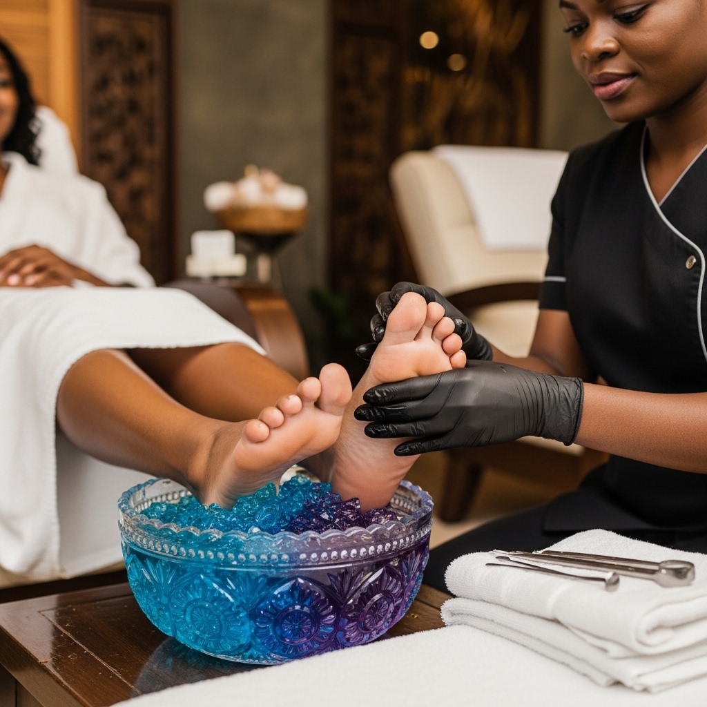 The jelly pedicure transforms warm water into a soothing jelly texture that helps soften skin and relax tired feet. It deeply hydrates, relieves stress, and enhances circulation while leaving your feet smooth, nourished, and refreshed.