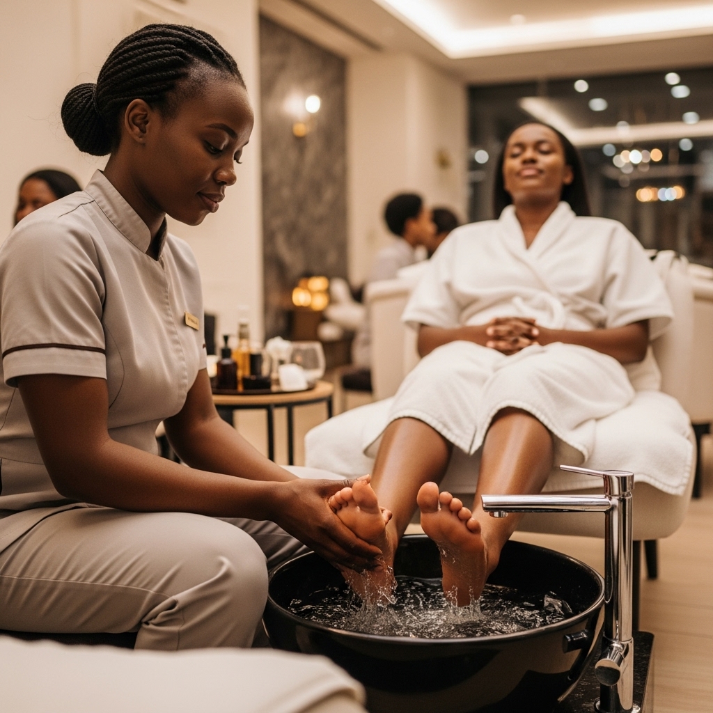 This VIP jelly pedicure offers an elevated foot care experience with added relaxation and attention to detail. It combines deep hydration, exfoliation, and soothing techniques to leave your feet soft, refreshed, and well pampered.